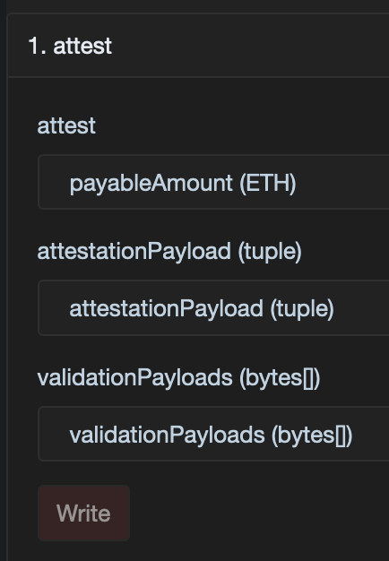 <figure><img src="https://259351524-files.gitbook.io/~/files/v0/b/gitbook-x-prod.appspot.com/o/spaces%2F2FAkOTJv7P1rIXf58dJF%2Fuploads%2Fgit-blob-eecdfeda5146caef85142a004a72f4b86a1efff0%2Fcreate_attestation.png?alt=media" alt="" width="217"><figcaption><p>The form generated by Lineascan to interact with the <code>Portal</code> contract</p></figcaption></figure>